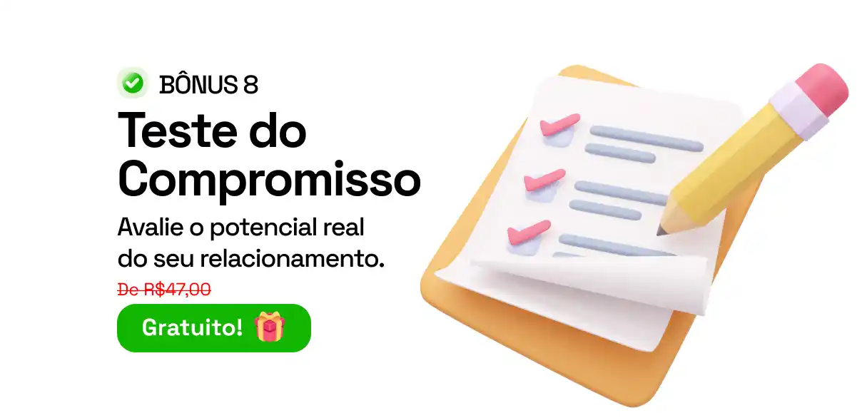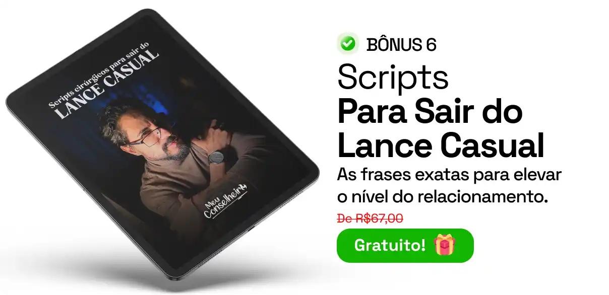 O método funciona para Qualquer mulher, em qualquer situação. São passos baseados em psicologia masculina comprovada. Se seguir o passo-a-passo, é impossível não ver resultados.